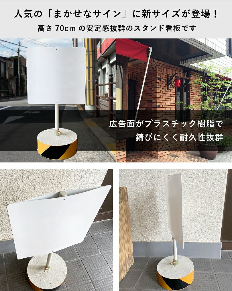 他の画像を見る 錆びに強い樹脂製広告面で倒れにくい当店オリジナルスタンド看板 まかせなサイン 白無地 コンクリートブロック付き 看板 os-muji 屋外 無地 ¥ 13,860 税込 会員特別価格 ¥ 13,167 税込 詳細を見る お気に入りに登録する