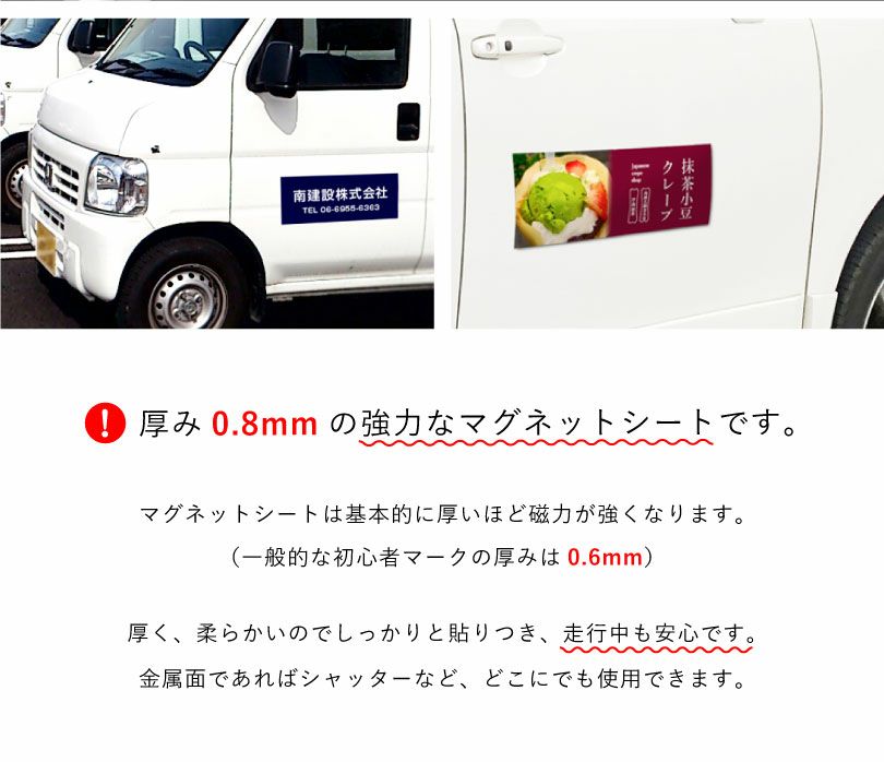 他の画像を見る 【デザイン作成・内容印刷込】厚み0.8mmの強力なマグネットシート。 マグネットシートH30×W60cm 車 トラック mag-sheet30 人気商品 デザイン自由 ¥ 7,744 税込 会員特別価格 ¥ 7,356 税込 詳細を見る お気に入りに登録する