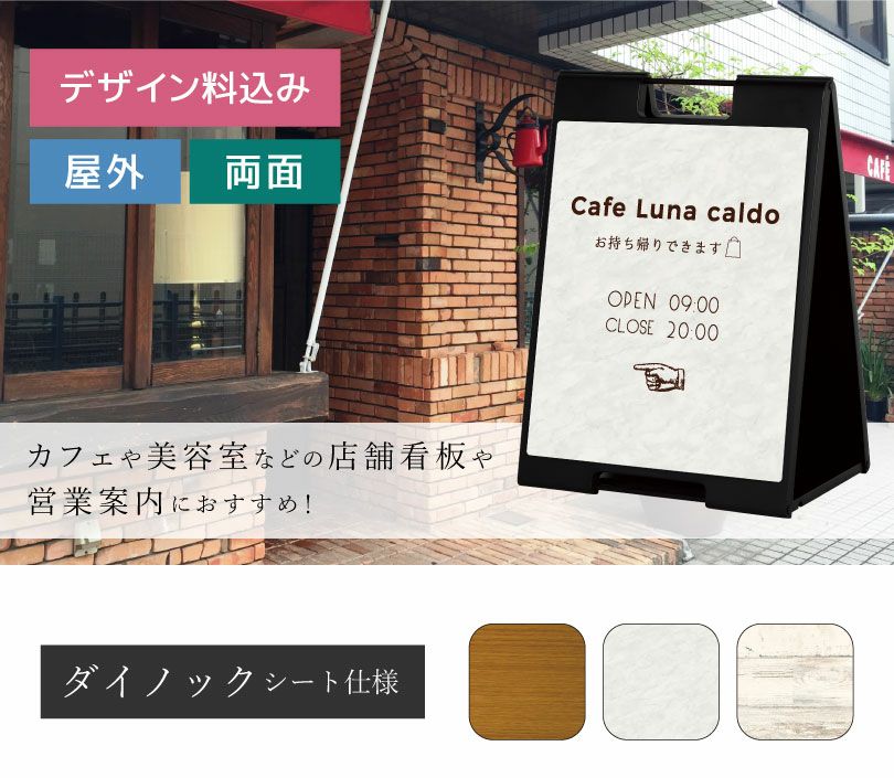 他の画像を見る カフェや美容室、店舗の営業案内にも。 【デザイン代込】ちょ大スタンドプレート SP-700-dk 送料無料 屋外 両面 デザイン自由 ¥ 38,500 税込 会員特別価格 ¥ 36,575 税込 詳細を見る お気に入りに登録する
